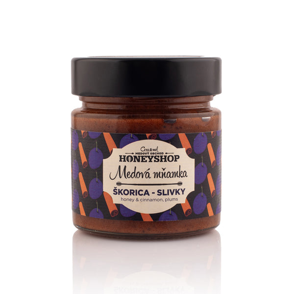 ZLOŽENIE: med 88 %, sušené slivky (slivky, konzervant: sorban draselný) 10 %, škorica 2 %